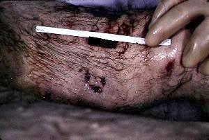 and allowed to soak on the wounds for several minutes. Only indistinct bloody